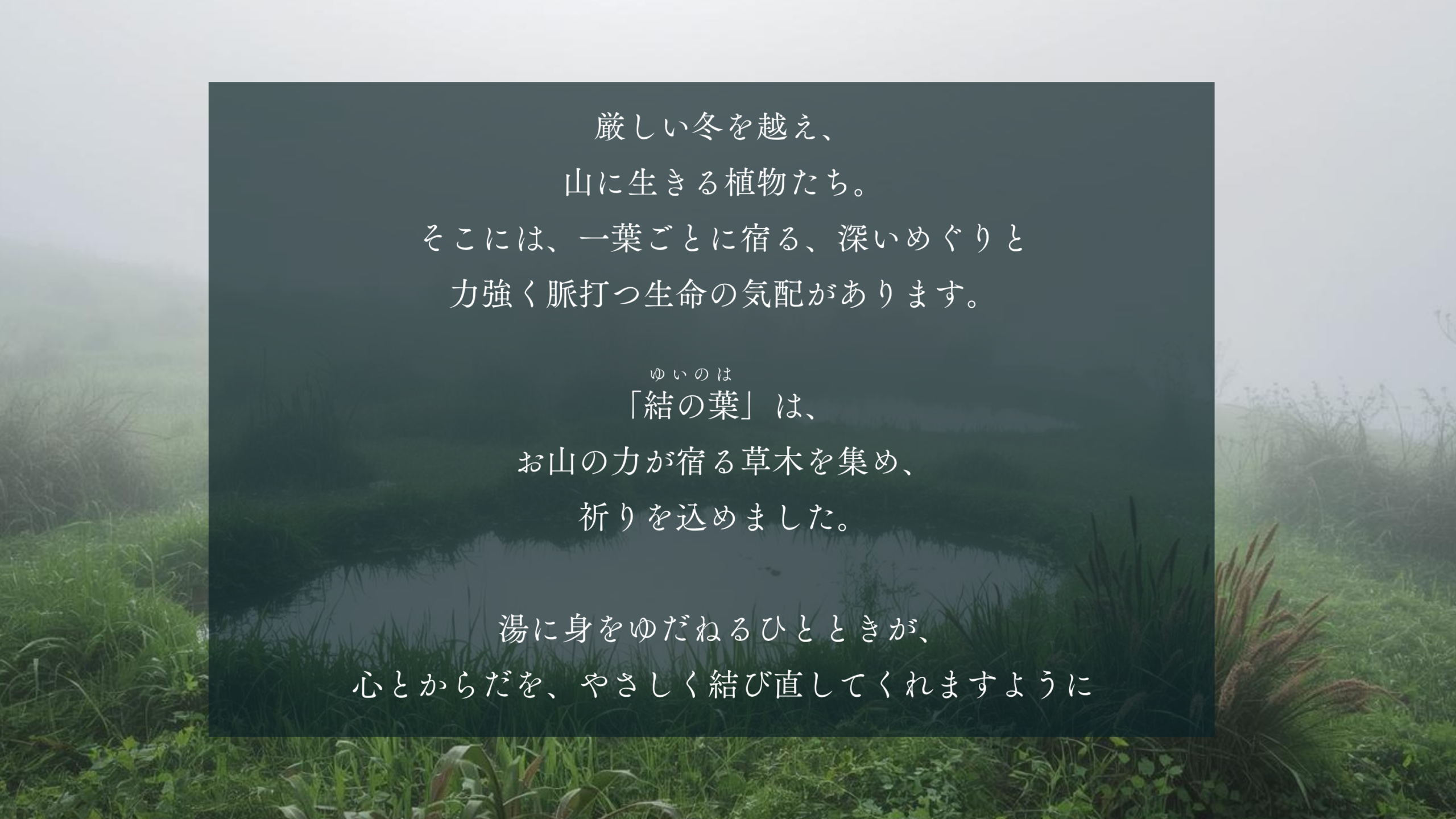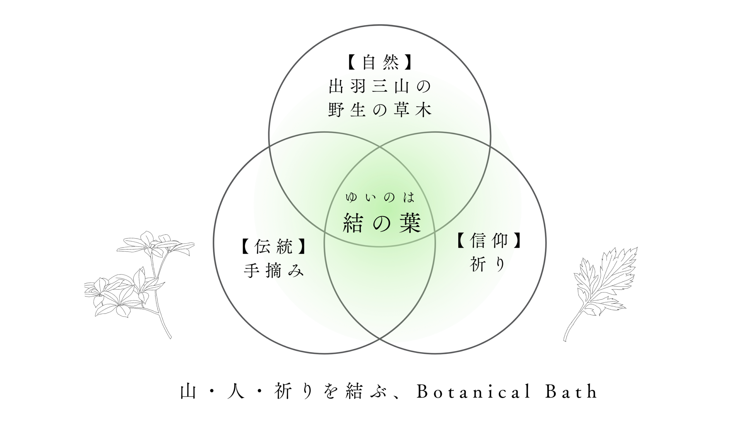 「結の葉」は、出羽三山に自生するヨモギやクロモジなどの草木を手摘みし、