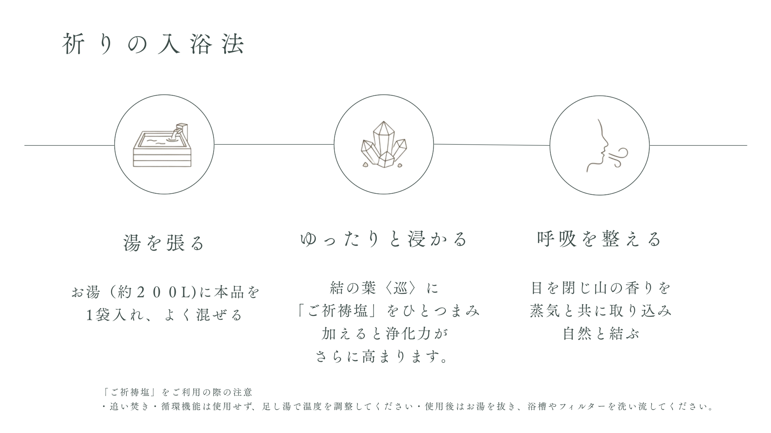 お手元の「ご祈祷塩」と共に、出羽三山の清浄な気をご自宅の湯船で感じてみていただければ幸いです。